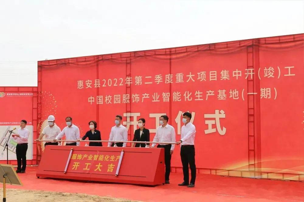 4月13日上午9時許,城南工業(yè)區(qū)(中國校園服飾產(chǎn)業(yè)基地)內(nèi),惠安縣隆重舉行中國校園服飾產(chǎn)業(yè)智能化生產(chǎn)基地一期項目開工儀式。中共惠安縣委書記王春雷,縣政協(xié)主席許貞麗,縣委副書記黃麗瓊,縣委常委、常務副縣長蔡旭萌、螺陽鎮(zhèn)黨委王海演書記、鎮(zhèn)長林少杰和項目業(yè)主代表辛景文等出席開工儀式并共同為項目開工推桿啟動。副縣長郭惠卿主持開工儀式并介紹項目情況。
