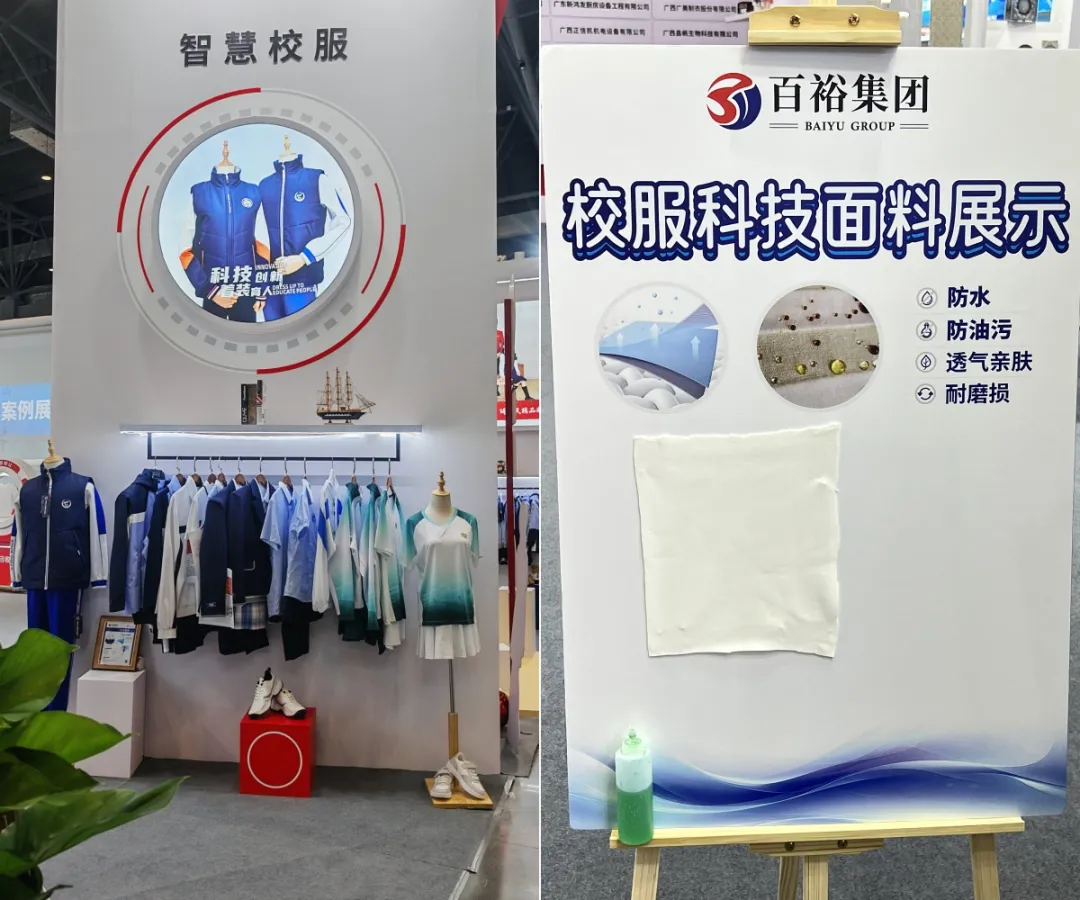 作為廣西教育裝備行業(yè)協(xié)會(huì)學(xué)校后勤裝備分會(huì)會(huì)長(zhǎng)單位,百裕集團(tuán)以獨(dú)具匠心的展位設(shè)計(jì)亮相,全面展示了在校園服飾、教育裝備的創(chuàng)新成果,成為現(xiàn)場(chǎng)備受關(guān)注的焦點(diǎn)之一。