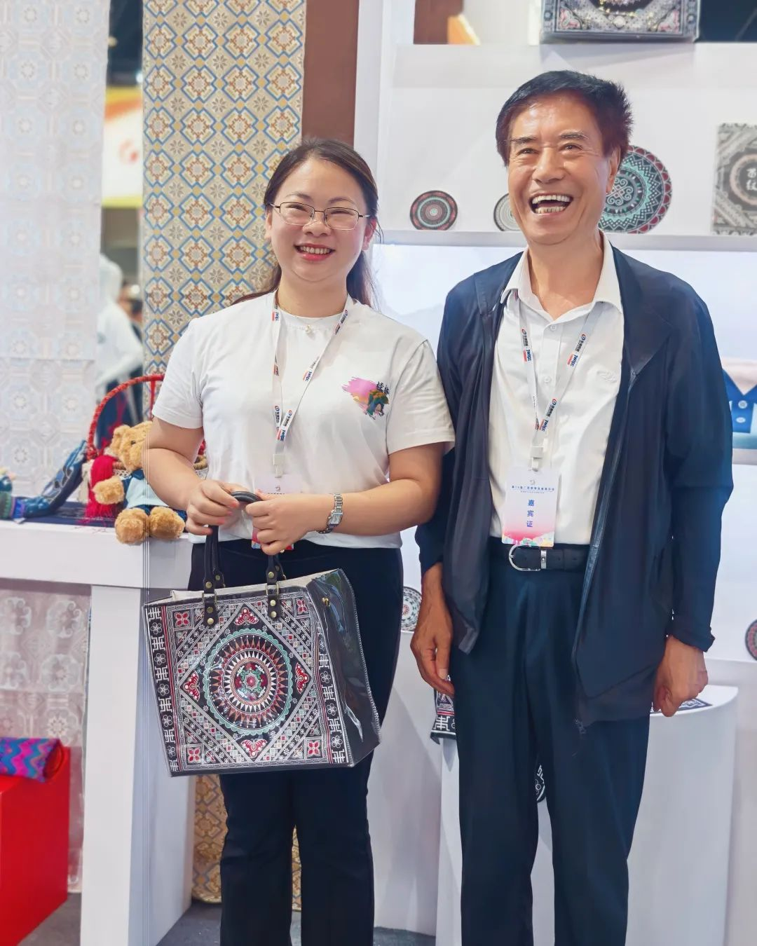 展示了與廣西經(jīng)貿(mào)職業(yè)技術(shù)學(xué)院共建的 “服裝數(shù)字化(百裕)產(chǎn)業(yè)學(xué)院” 階段性成果。展區(qū)涵蓋校服樣式文具筆袋、壯錦布及民族風(fēng)格的文創(chuàng)衍生品等。這些文創(chuàng)產(chǎn)品生動(dòng)詮釋了“教育+文化+產(chǎn)業(yè)” 的創(chuàng)新模式,成為展位中融合創(chuàng)新的亮眼板塊。