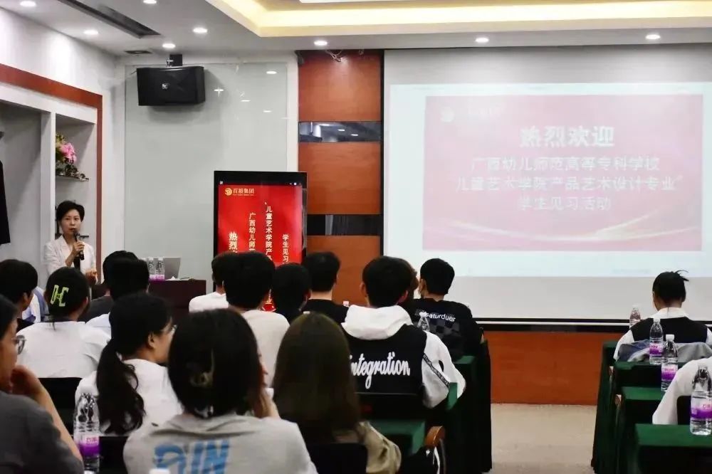 3月21日,廣西幼兒師范高等??茖W(xué)?!皟和囆g(shù)學(xué)院產(chǎn)品藝術(shù)設(shè)計(jì)專業(yè)” 2022級(jí)59名學(xué)生,在老師們的帶領(lǐng)下,來到百裕集團(tuán)南寧營銷中心開展見習(xí)活動(dòng)。
