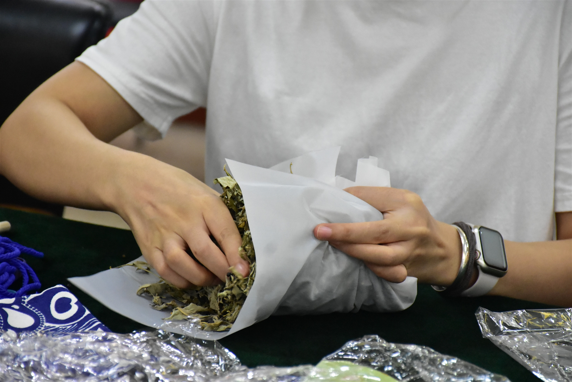 每位員工都認(rèn)真挑選艾草,細(xì)心纏繞五彩線,精心固定小錘子。制作過程中,大家互相交流心得,分享技巧,現(xiàn)場洋溢著歡聲笑語。