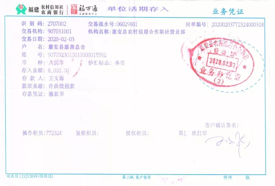 (向惠安縣慈善總會(huì)捐贈(zèng)8000元)