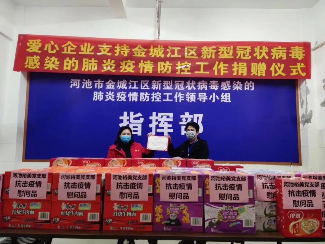2月13日,百裕集團(tuán)河池分公司為河池市金城江區(qū)新型冠狀病毒感染的肺炎疫情防控工作小組指揮部,送去抗擊疫情慰問(wèn)品。