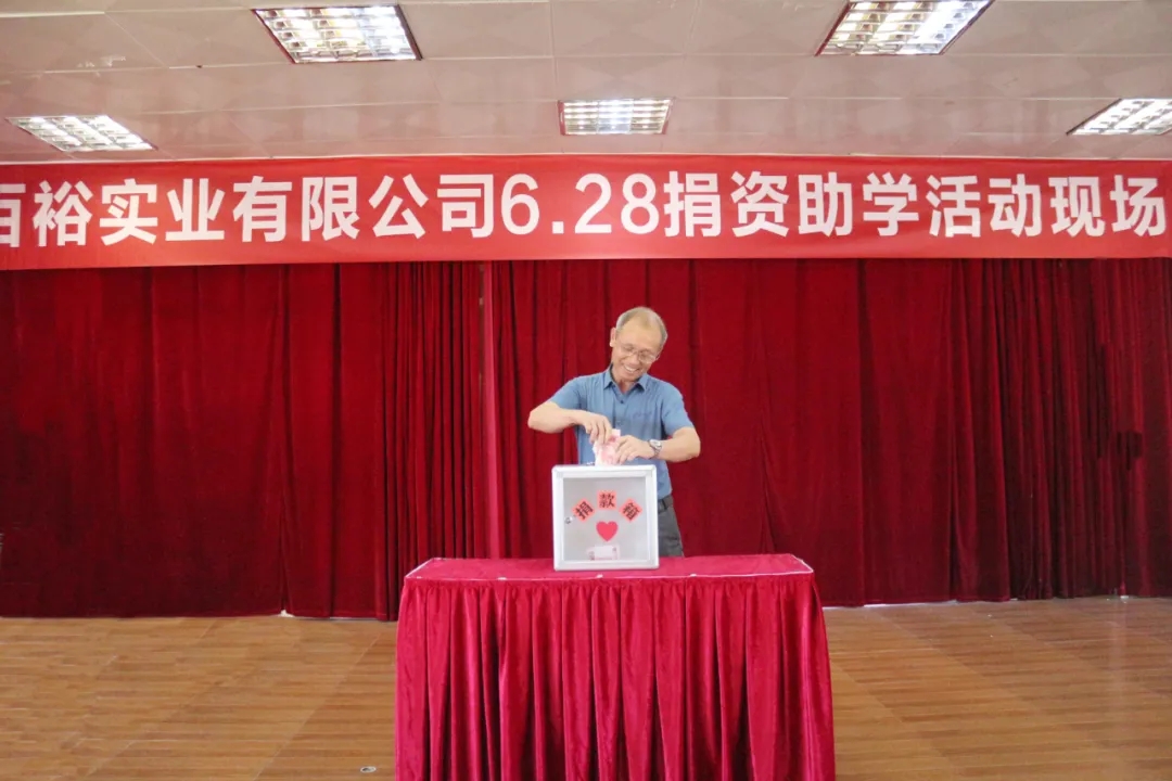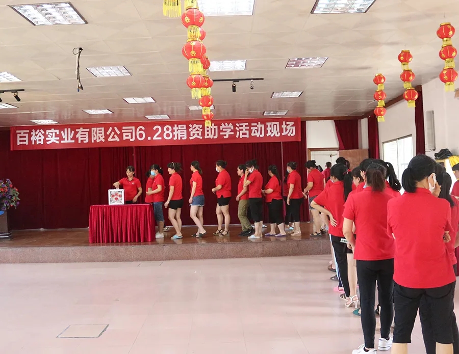 當(dāng)天,百裕集團(tuán)岑溪生產(chǎn)中心(百裕實(shí)業(yè)公司)也積極開展“6.28捐資助學(xué)”活動(dòng),號(hào)召全廠職工積極參與,共同傳遞希望之光。