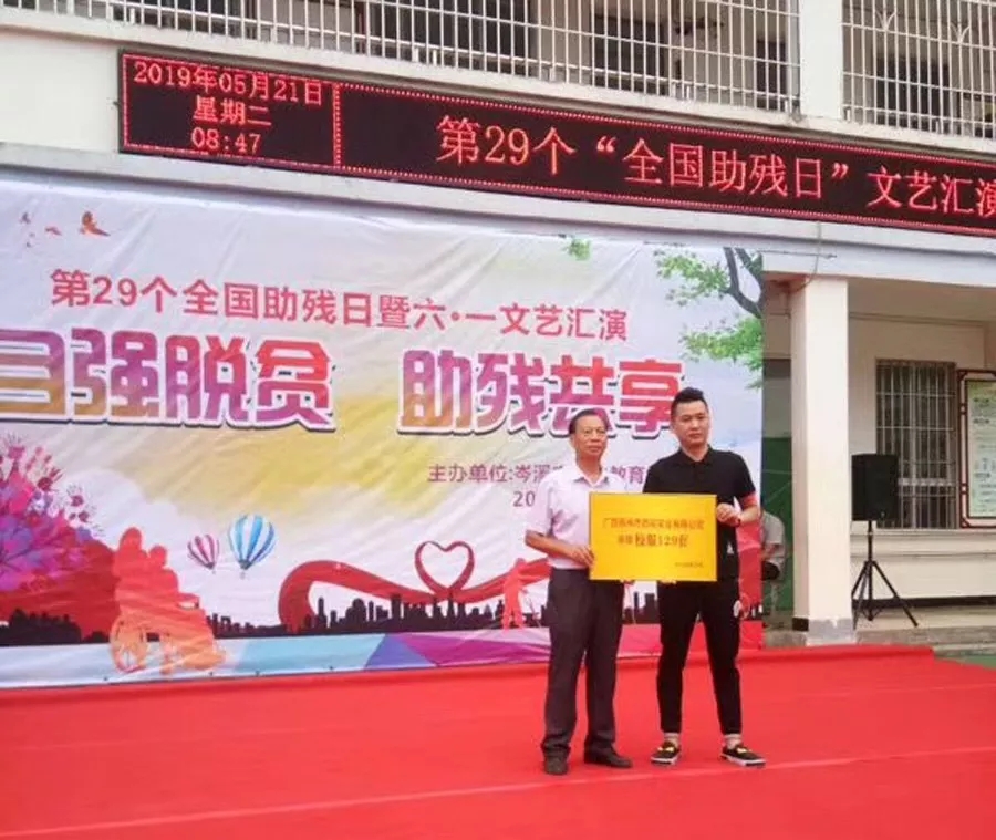 時值第二十九個全國助殘日,5月21日,以“自強(qiáng)脫貧 助殘共享”為主題第29個全國助殘日暨六一文藝匯演在岑溪市特殊教育學(xué)校舉行,活動中,百裕集團(tuán)為孩子們送出愛心校服129套,以此共同為孩子們慶祝屬于他們的節(jié)日。